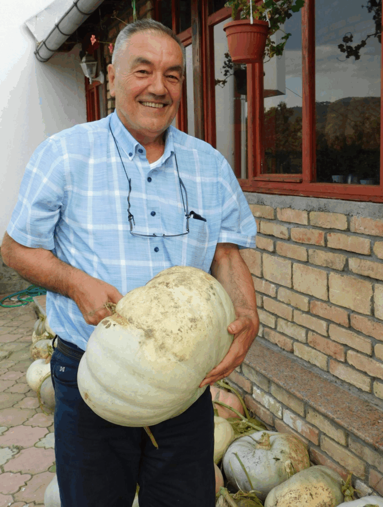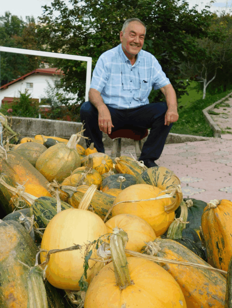 – Voće, povrće i različite vrste poljoprivrednih proizvoda i drugog bilja uzgajam iz ličnog zadovoljstva. U svojoj bašti uzgajam jabuke, kruške, orahe, grožđe, krompir, papriku, grah, aroniju… Nije rijedak slučaj da u mojoj bašti izrastu i tikve stambolke, neobične veličine i težine. I sam sam pomalo bio iznenađen kada sam vidio u kakve sve džinovske ljepotice izrastaju. Neke od njih znaju vagati više od 30 kilograma, a neke dostižu i težinu od 43 kilograma – kaže Merdić.
